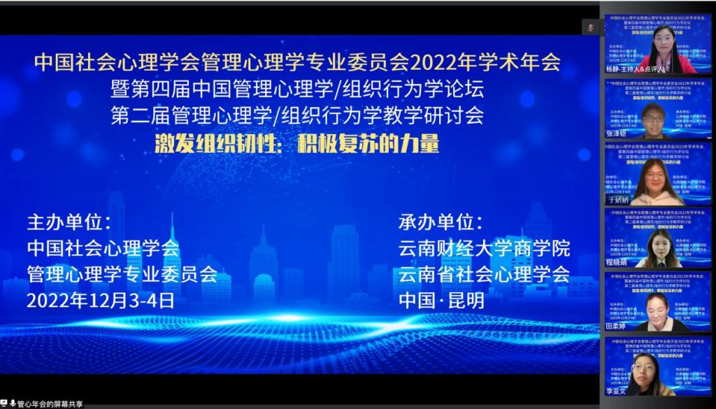 12月3日—4日由中国社会心理学会管理心理学专业委员会主办、云南财经大学商学院和云南省社会心理学会联合承办的第四届中国管理心理学/组织行为学论坛以线上形式举办。本届学术年会以“激发组织韧性:积极复苏的力量”为主题,来自中国科学院心理研究所、北京大学、中国人民大学等高校的师生参加了本届论坛,共计16万多人次在线参会。性爱网站